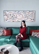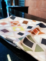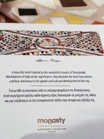 This is the silk scarf ‘Stones’ I designed for the award winning Monasty autograph collection hotel in Thessaloniki and it is part of the permanent decor in the hotel’s suite. The piece is inspired by Byzantine street mosaics and making it was very interesting to me as I got to explore the Byzantine tradition which is a big part of the history of my hometown / 2022 / Thessaloniki / Greece