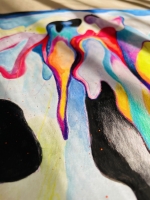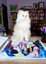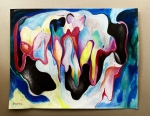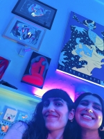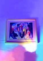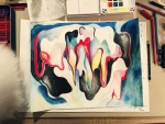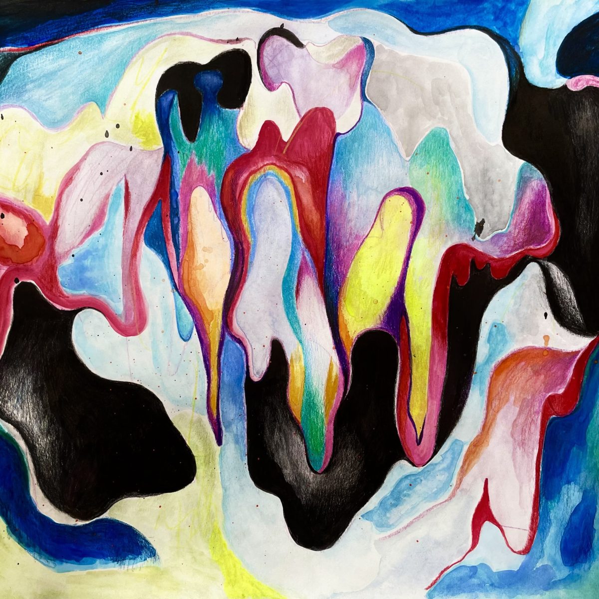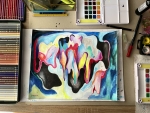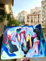 This is my piece Small hours / 47cm x 39cm (framed) / Colour pencil, water colour and Indian ink on paper / which I exhibited at the group show for the celebration of the two years of the Artworld gallery / 2025 / Artworld / Athens / Greece