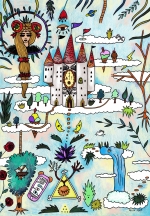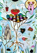 From the show statement: There is one space besides reality that unapologetically and even intentionally merges a multitude of elements from very diverse origins and that is the realm of video games. This is a series of illustrations documenting the raw freedom of patching everything together like in a video game environment / The Video Games show / 2022 / the Handlebar / Athens / Greece
