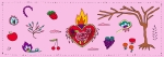 The Cherry Heart collection is the third silk scarf collection that Athina Pappa designed for Emmanuelle silk. These designs have a lot of reds, pinks and hearts and they are inspired by the many shapes that love emotions come in, from the love towards our pet to romantic and maternal love / 2024 / Thessaloniki / Greece